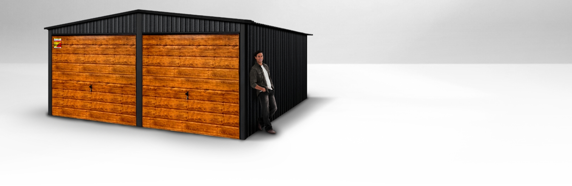 Garaż blaszany 4X5 LUX drewnopodobny – Dwuspadowy dach, brama uchylna