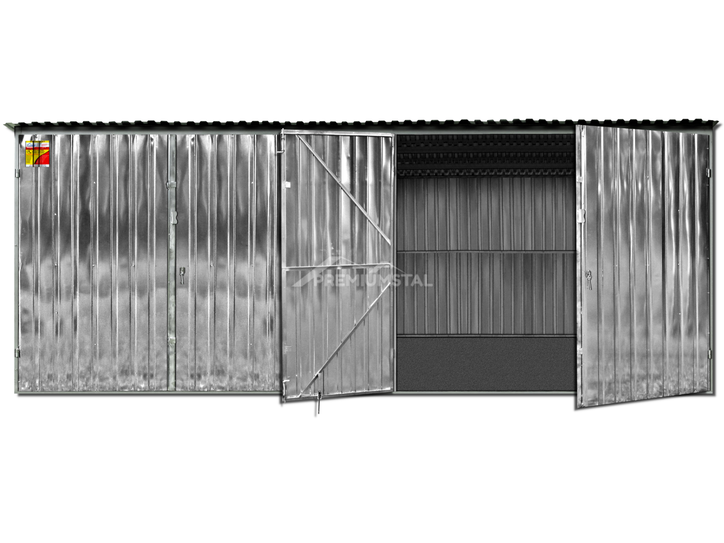 OCYNKOWANY GARAŻ BLASZANY 7X6 – SPAD DACHU DO TYŁU, BRAMY DWUSKRZYDŁOWE, KONSTRUKCJA OCYNKOWANA