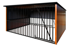 KOJEC DLA PSA 3,5X2,5 – KOJEC Z PROFILI OCYNKOWANYCH Z DREWNIANĄ PODŁOGĄ, ZABUDOWANYMI ŚCIANAMI I OKUCIAMI