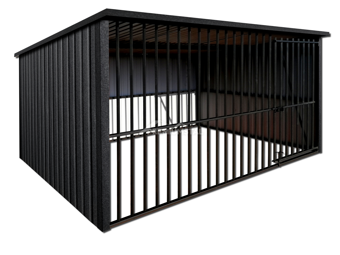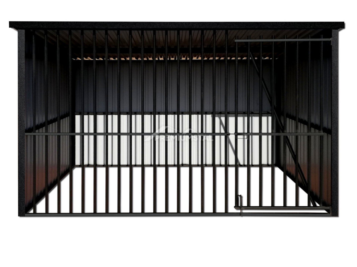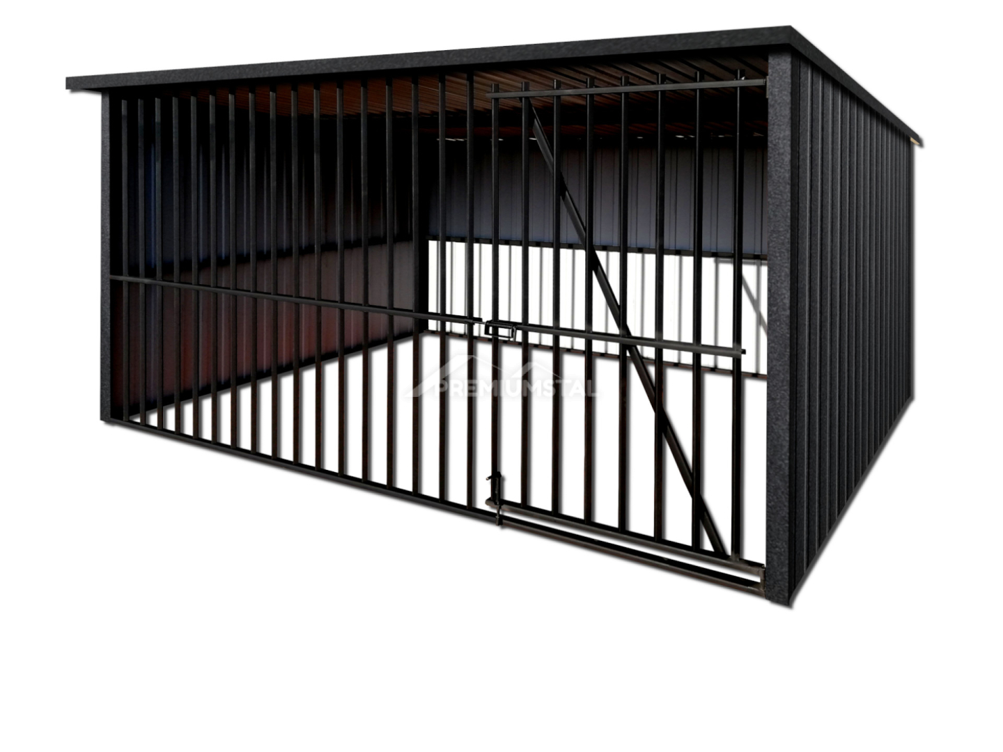 KOJEC DLA PSA 3X2 – KOJEC Z CZARNYCH PROFILI, Z OKUCIAMI, ZABUDOWANY BLACHĄ AKRYLOWĄ W KOLORZE GRAFIT MAT.