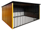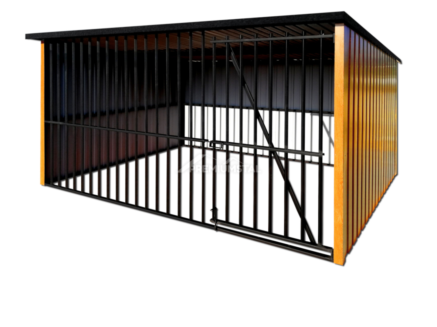 KOJEC DLA PSA 3X2 – KOJEC Z CZARNYCH PROFILI, Z OKUCIAMI, ZABUDOWANY BLACHĄ DREWNOPODOBNĄ W KOLORZE SOSNA.