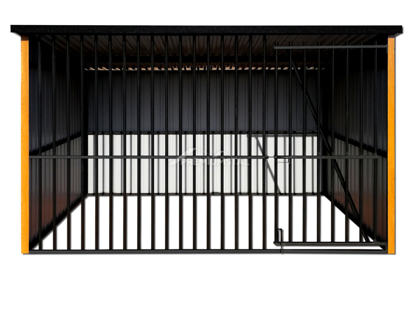 Oferowanym produktem jest kojec dla psa wykonany z czarnych profili, zawijanych-niezgrzewanych, wzbogacony w okucia blacharskie i ściany zabudowane blachą drewnopodobną!