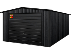 Garaż blaszany 4X4 LUX – Dwuspadowy dach, brama uchylna, czarny mat