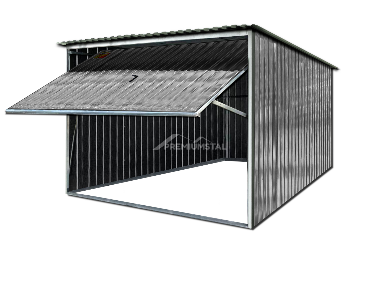OCYNKOWANY GARAŻ BLASZANY 3X3 – SPAD DACHU DO TYŁU, BRAMA UCHYLNA, KONSTRUKCJA OCYNKOWANA