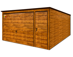 Garaż blaszany 4X4 PREMIUM – Spad dachu do tyłu, brama uchylna i drzwi