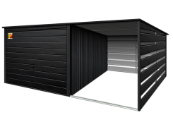 Garaż LUX 4X4 z wiatą SMK – Spad dachu do tyłu, brama uchylna