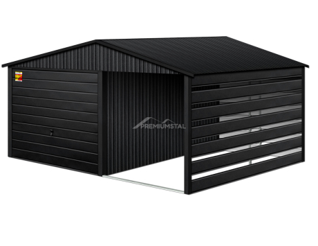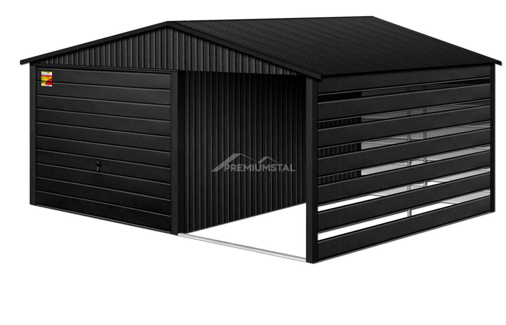 GARAŻ LUX 4X5 Z WIATĄ SMK – DWUSPADOWY DACH, BRAMA UCHYLNA, OKUCIA BLACHARSKIE DACHU I NAROŻNIKÓW