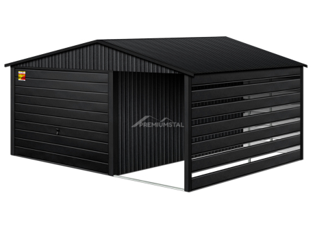 GARAŻ LUX 5X4 Z WIATĄ SMK – DWUSPADOWY DACH, BRAMA UCHYLNA, OKUCIA BLACHARSKIE DACHU I NAROŻNIKÓW