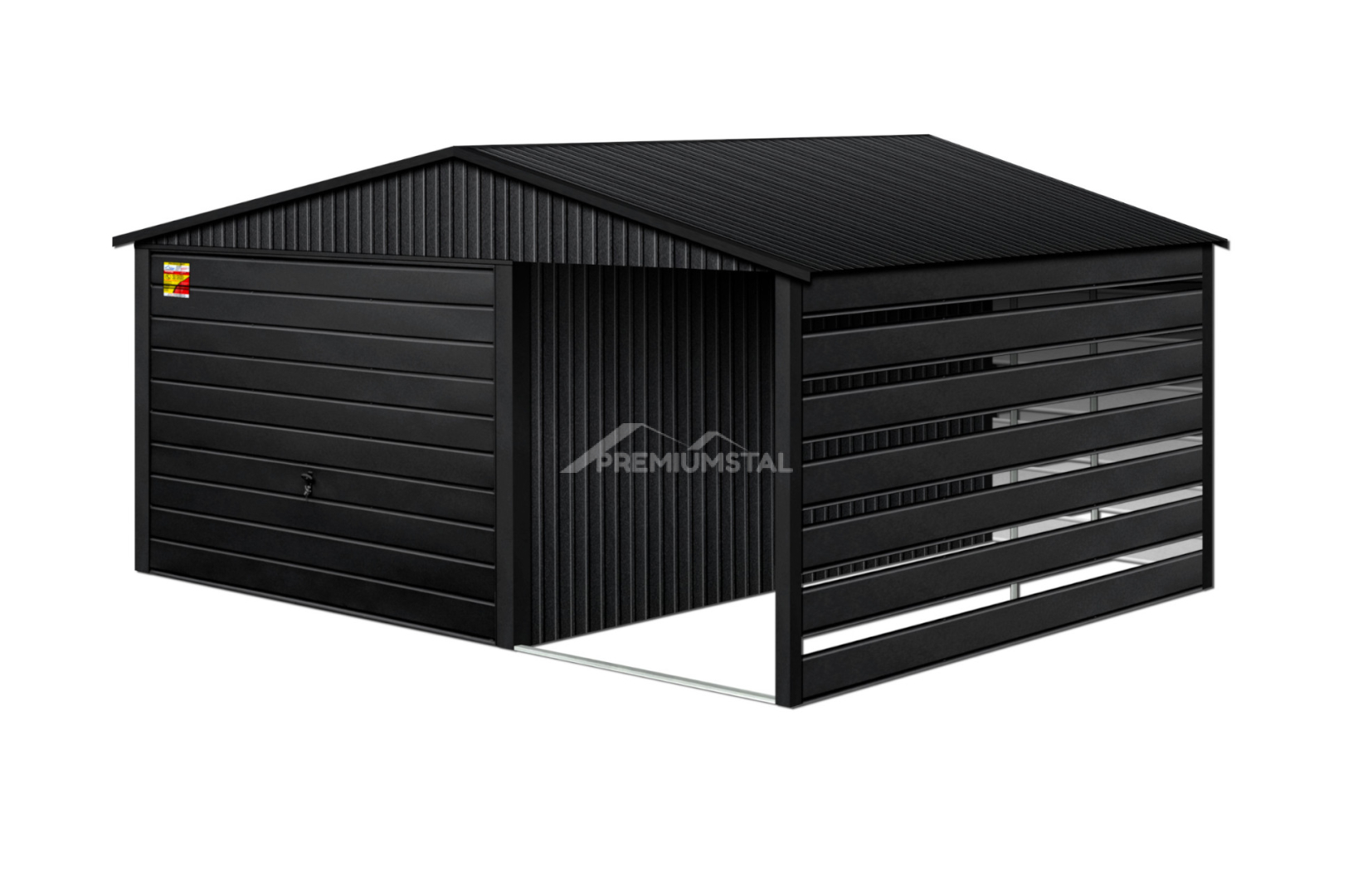 GARAŻ LUX 5X8 Z WIATĄ SMK – DWUSPADOWY DACH, BRAMA UCHYLNA, OKUCIA BLACHARSKIE DACHU I NAROŻNIKÓW