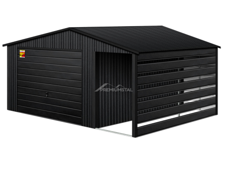 GARAŻ LUX 6X6 Z WIATĄ SMK – DWUSPADOWY DACH, BRAMA UCHYLNA, OKUCIA BLACHARSKIE DACHU I NAROŻNIKÓW