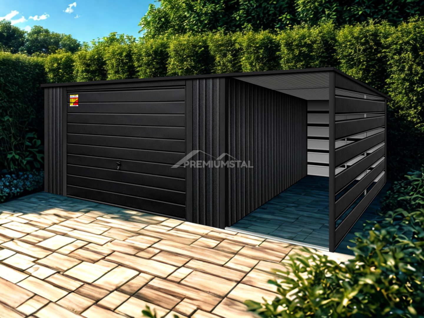 GARAŻ LUX 7X6 Z WIATĄ SMK – SPAD DACHU DO TYŁU, BRAMA UCHYLNA, OKUCIA BLACHARSKIE DACHU I NAROŻNIKÓW