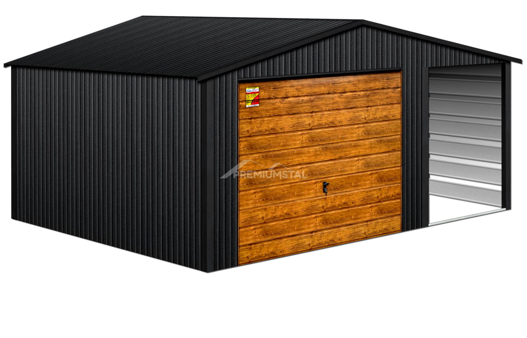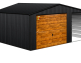 GARAŻ LUX 7X7 Z WIATĄ SMK – DWUSPADOWY DACH, BRAMA UCHYLNA SOSNA, OKUCIA BLACHARSKIE DACHU I NAROŻNIKÓW