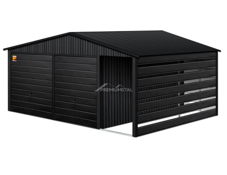 GARAŻ LUX 8X5 Z WIATĄ SMK – DWUSPADOWY DACH, BRAMY UCHYLNE, OKUCIA BLACHARSKIE DACHU I NAROŻNIKÓW