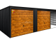 - dwie bramy uchylne w panelu poziomym szerokie – kolor drewnapodobny SOSNA