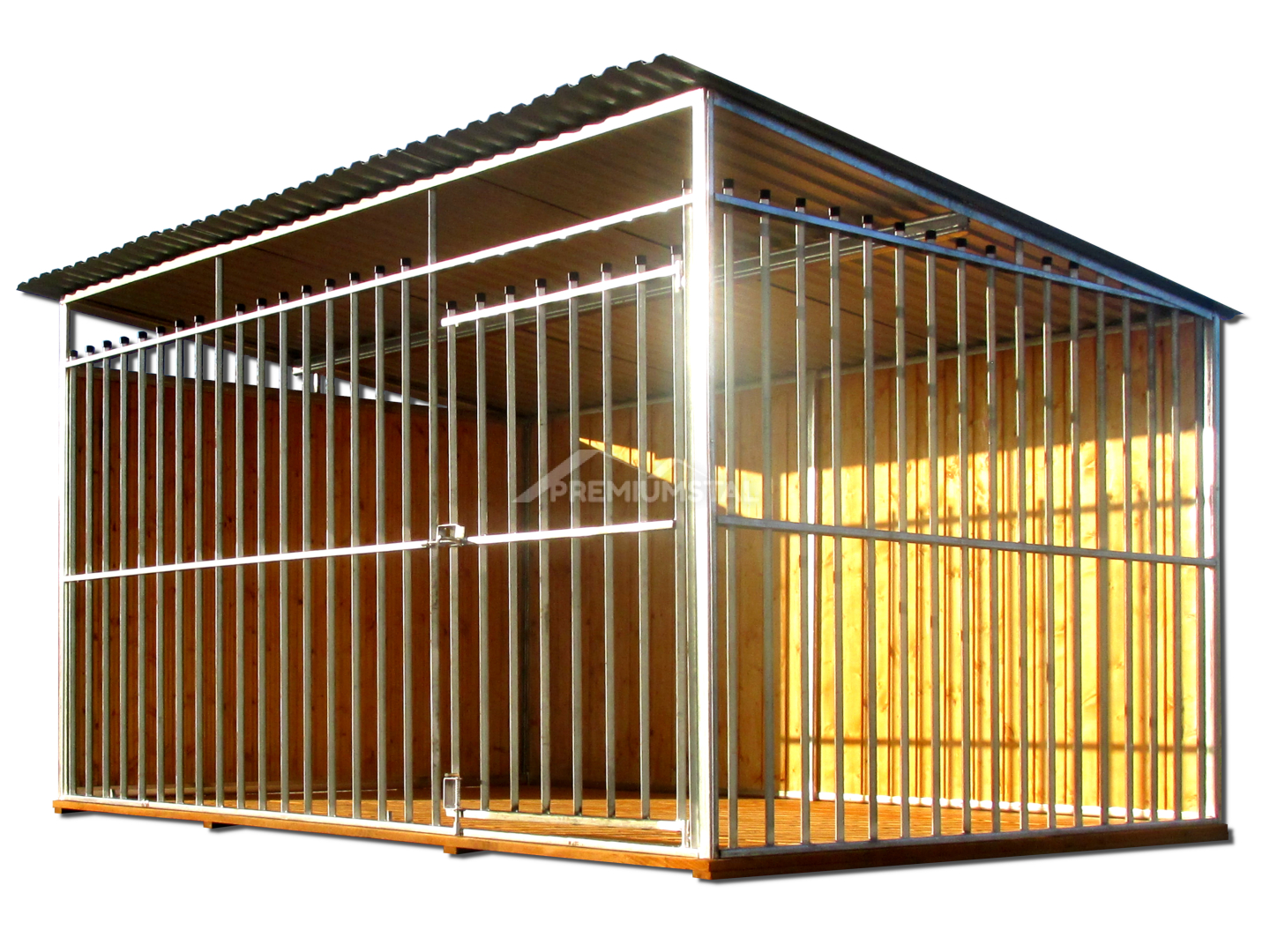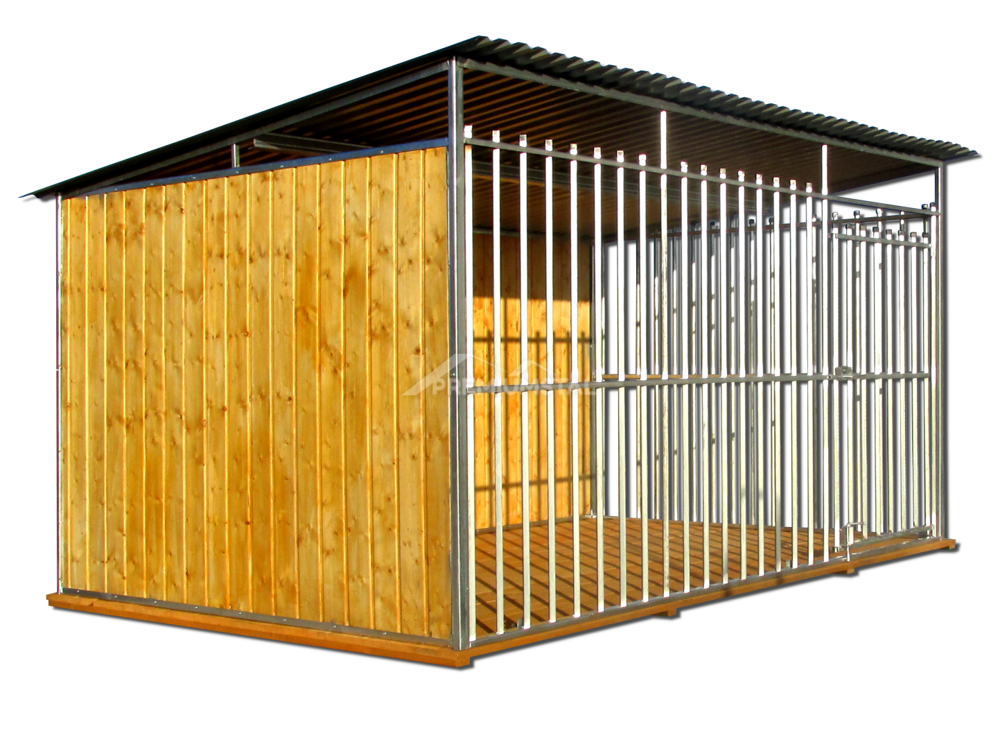 KOJEC DLA PSA 2,5X2 – KOJEC Z PROFILI OCYNKOWANYCH Z DREWNIANĄ PODŁOGĄ, ZABUDOWANYMI ŚCIANAMI I ZAŚLEPKAMI