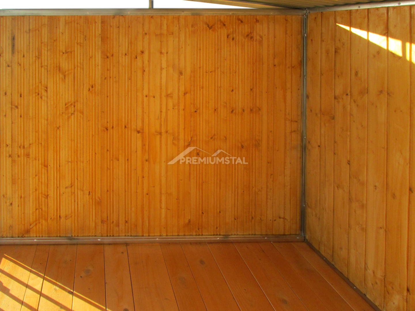 - tylna i lewa ściana zabudowane drewnianymi deskami