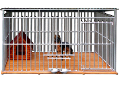 Kojec dla psa 4x3 - kojec z profili ocynkowanych z drewnianą podłogą, uchwytami na miski i zaślepkami