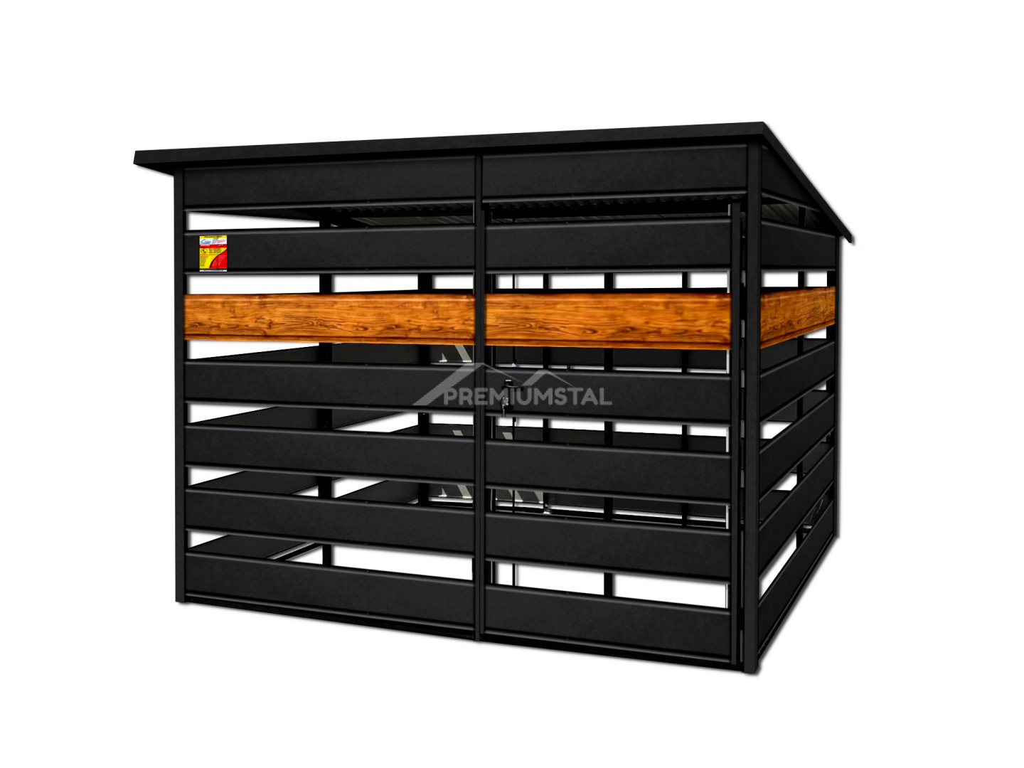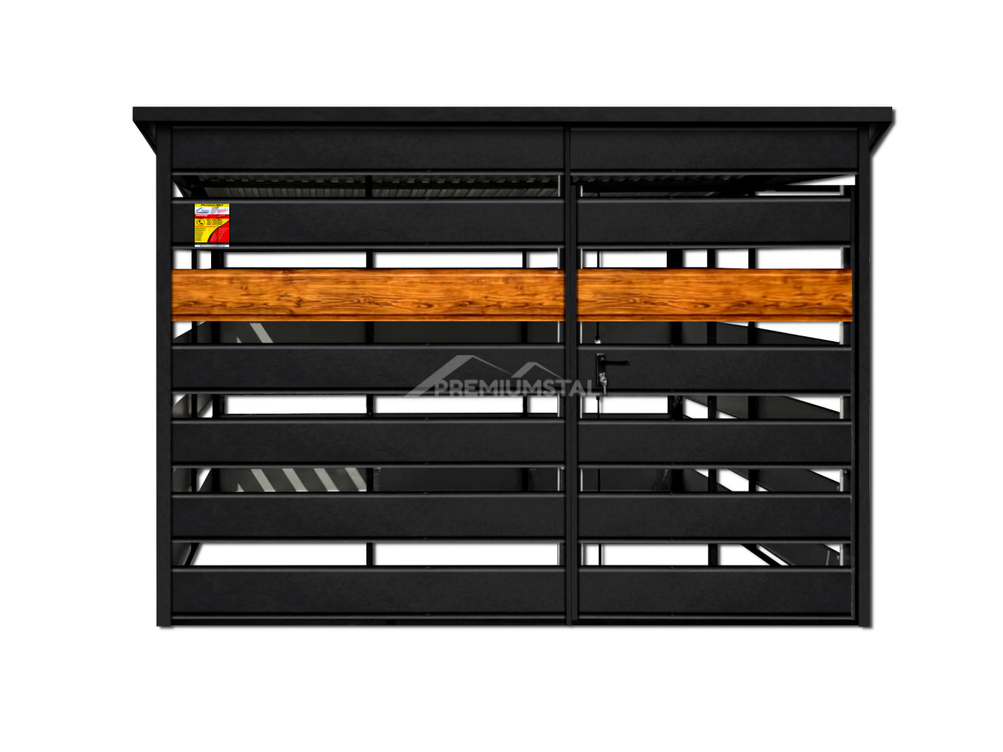 WIATA ŚMIETNIKOWA SMK 3,5X2 – DRZWI JEDNOSKRZYDŁOWE, OKUCIA BLACHARSKIE, CZARNY MAT & ZŁOTY DĄB