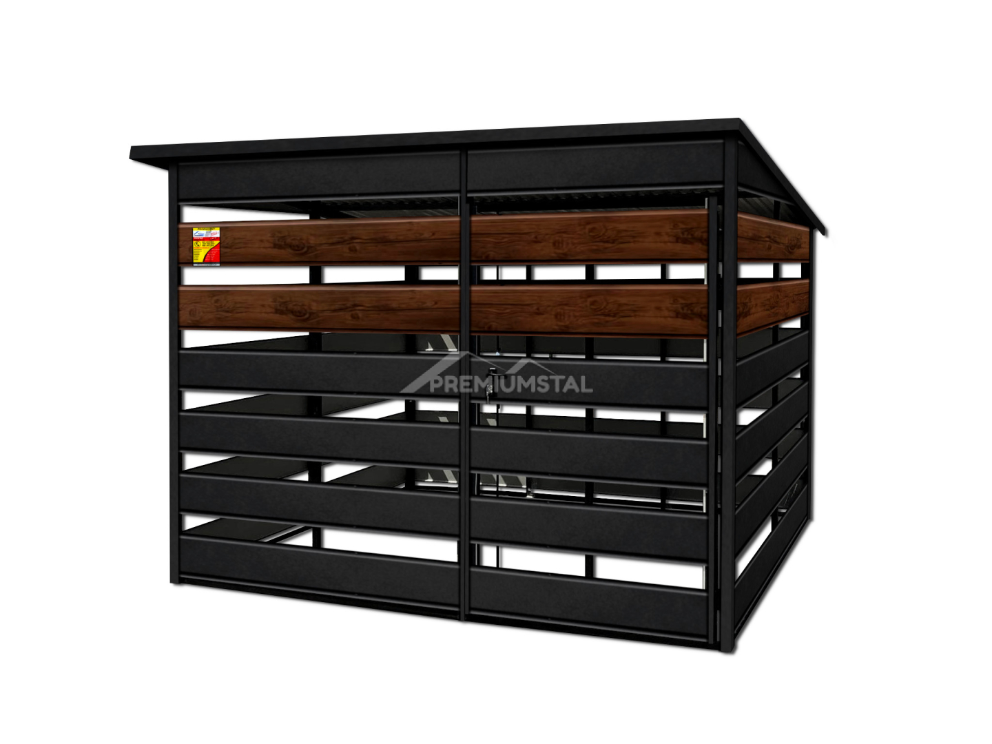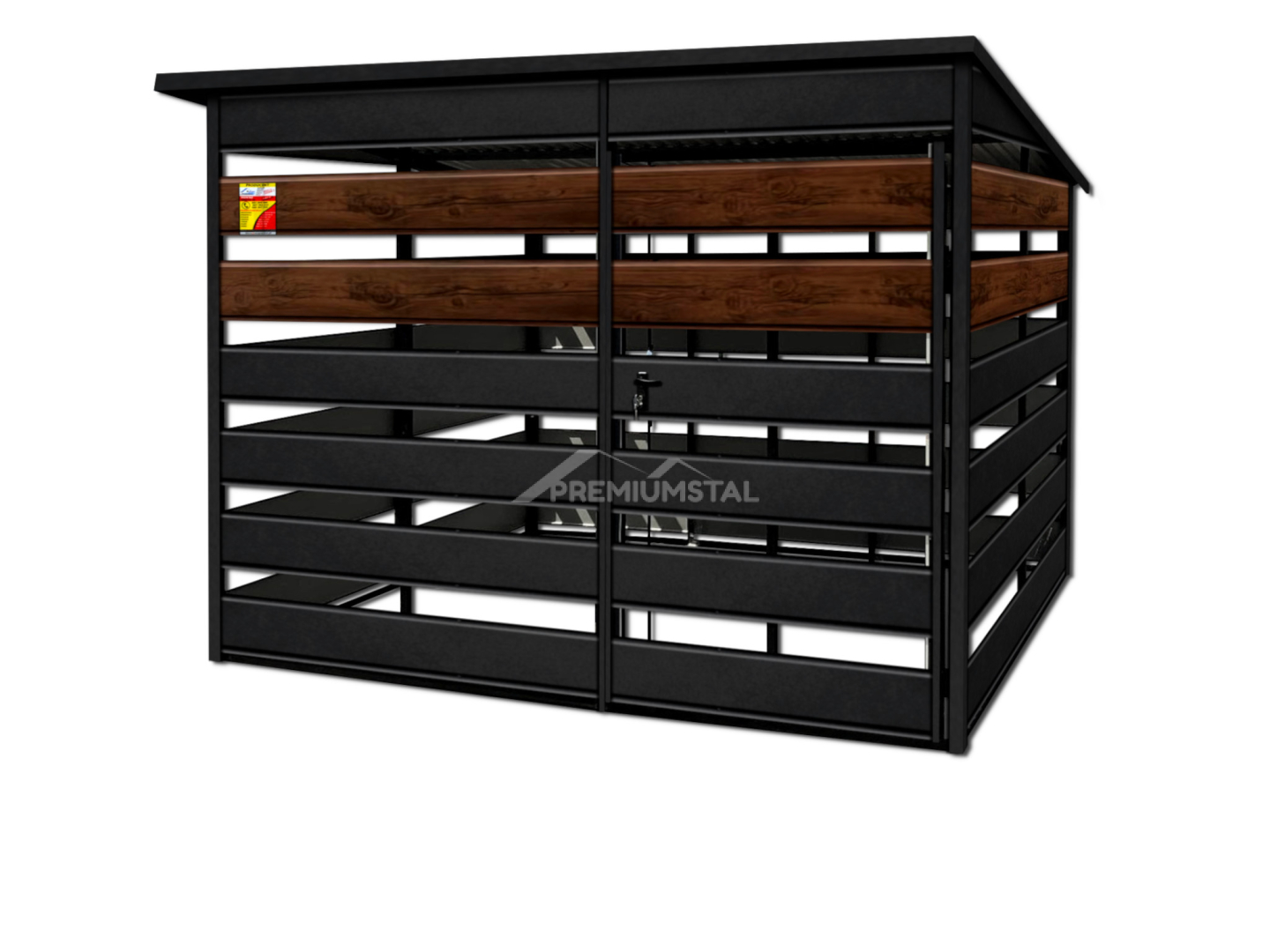 WIATA ŚMIETNIKOWA SMK 3X3 – DRZWI JEDNOSKRZYDŁOWE, OKUCIA BLACHARSKIE, CZARNY MAT & ORZECH