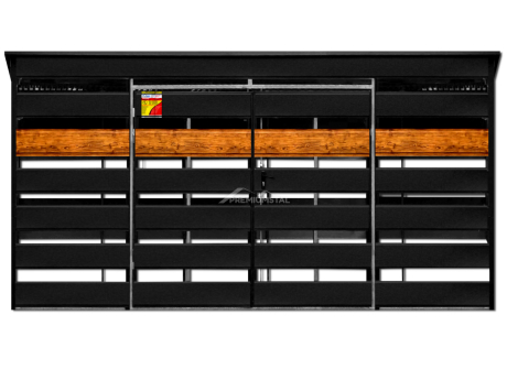 WIATA ŚMIETNIKOWA SMK 4X3 – DRZWI DWUSKRZYDŁOWE, OKUCIA BLACHARSKIE, CZARNY MAT & ZŁOTY DĄB