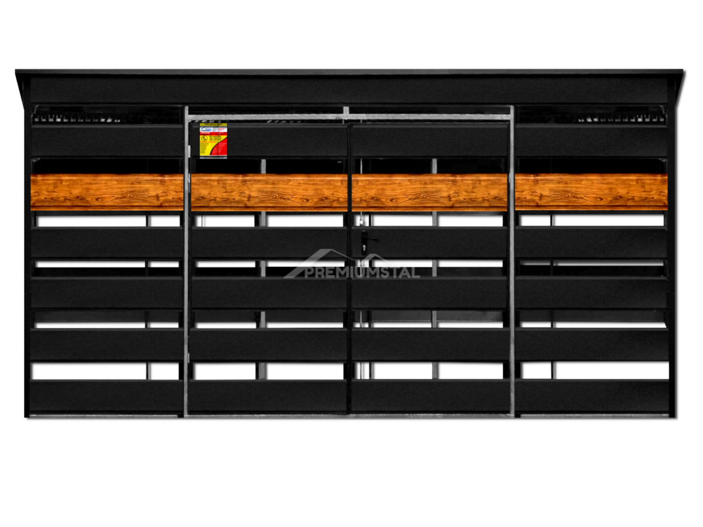 WIATA ŚMIETNIKOWA SMK 5X3 – DRZWI DWUSKRZYDŁOWE, OKUCIA BLACHARSKIE, CZARNY MAT & ZŁOTY DĄB